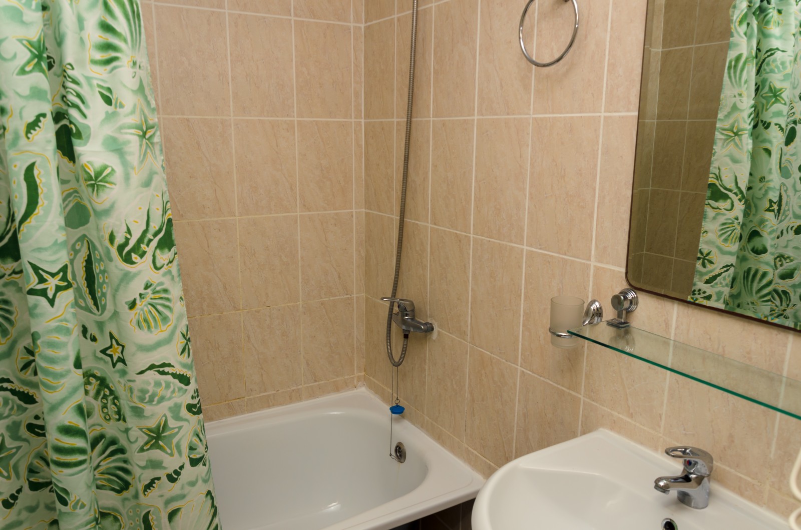 Номер располагается корпусе и состоит из прихожей, спальни и совмещенного санузла. Площадь номера 20 кв.м. В спальне на полу лежит ковролин в прихожей и санузле кафель. Спальня: двуспальная 140*200 и односпальная кровати, прикроватные тумбочки, туалетный столик с зеркалом, стол, стулья, холодильник, телевизор, настольные светильники, кондиционер. Санузел: туалет, ванна, умывальник, зеркало с полочкой, фен. В прихожей: шкаф для одежды, тумба для обуви.